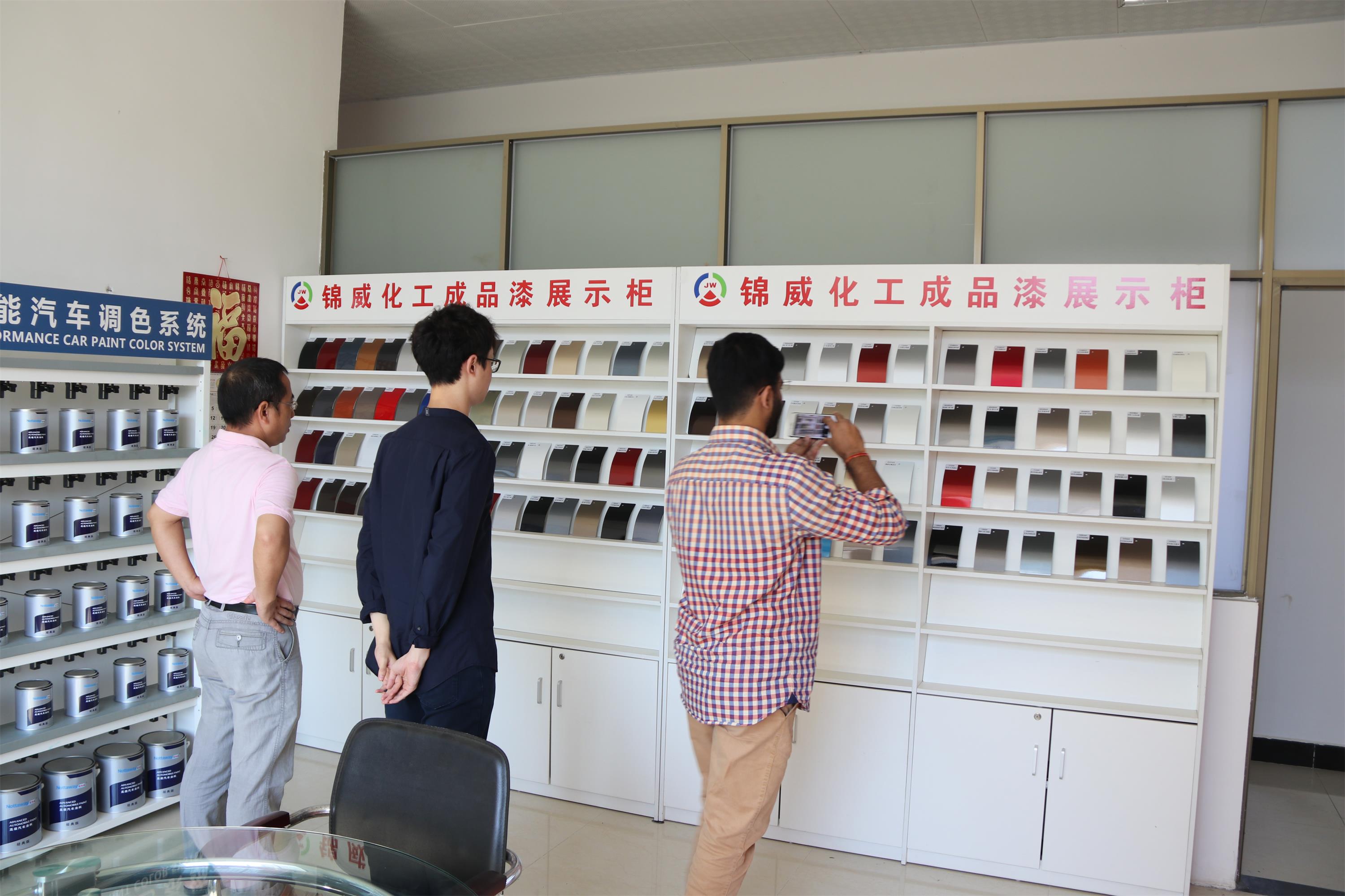 為讓客戶全面的了解錦威公司,羅總詳細的向客戶介紹了公司的發(fā)展歷程、產(chǎn)品的發(fā)展情況等,一起探討了汽車油漆行業(yè)的發(fā)展前景 ,并帶客戶參觀了工廠的生產(chǎn)車間、工程房、實驗室、倉庫等,并詳細的介紹了公司產(chǎn)品的生產(chǎn)工藝性能。