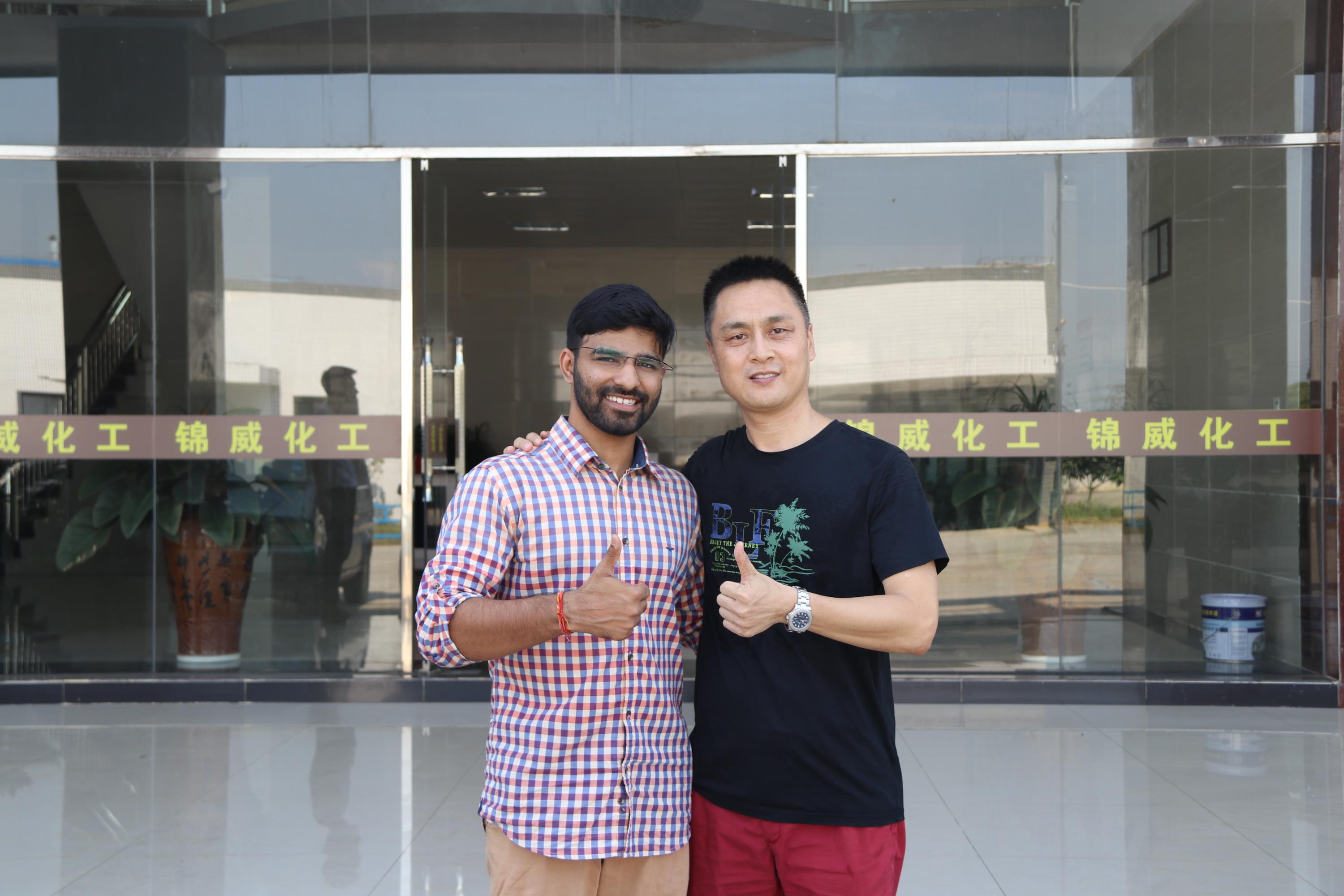 2016年7月30日,印度客戶Mohit先生來到錦威化工公司工廠參觀考察,公司總經(jīng)理羅總,外貿(mào)部經(jīng)理、技術(shù)工程師等相關(guān)同事陪同接待。
